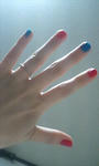画像の爪、赤色に爪を何本か塗ってたら空いてるとこに青色をれいさんに塗られました(笑)